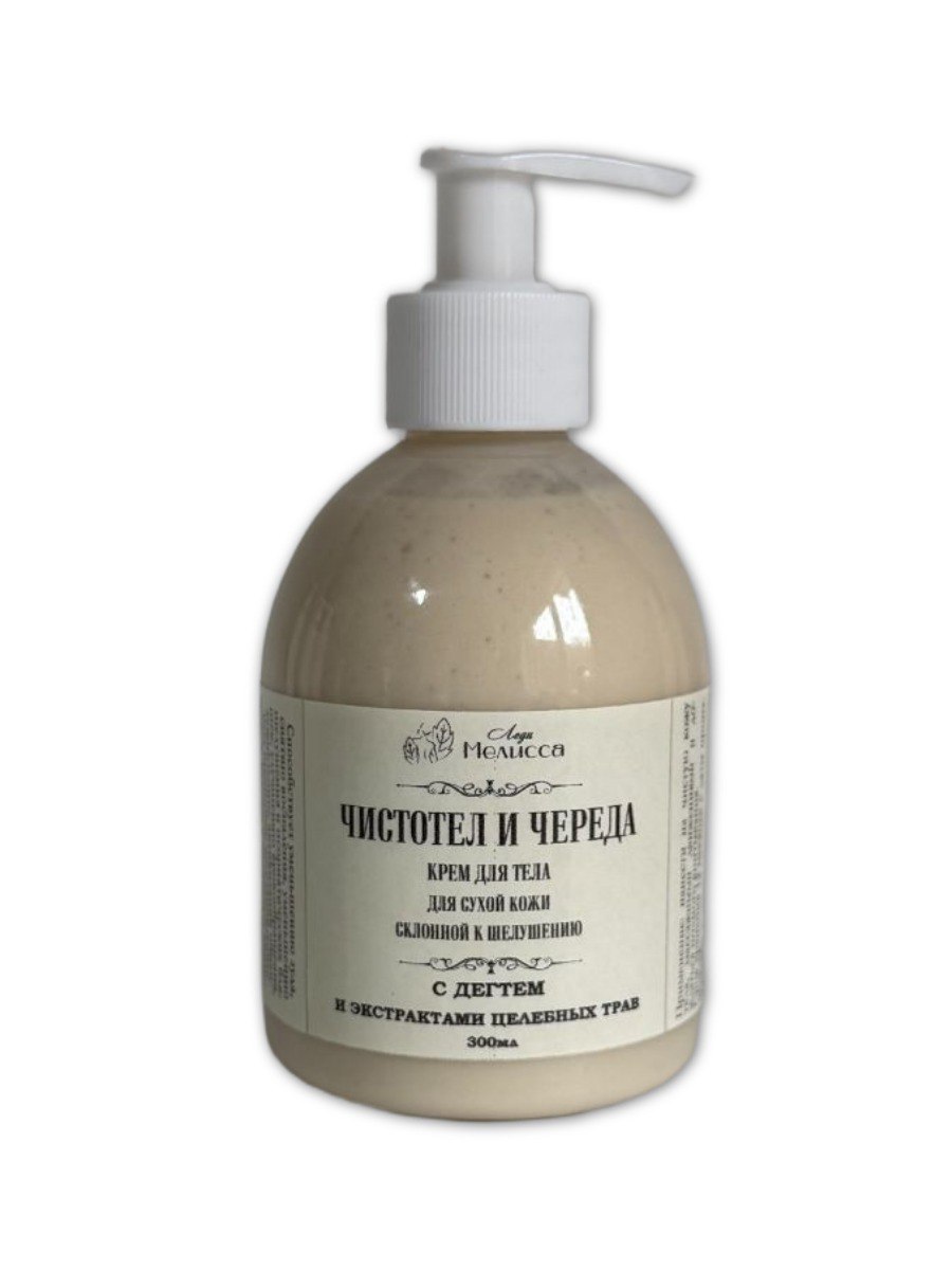 Фитокрем-сыворотка с чистотелом и чередой обладает противовоспалительным, антибактериальным, противозудным, регенерационным эффектами. Крем для сухой кожи подходит для профилактики дерматозов, для стационарной и регрессирующей стадий заболеваний, помогает при обострениях. Способствует уменьшению зуда, снятию воспаления, уменьшению шелушения, улучшению кровообращения, заживлению, активизации обменных процессов, восстановлению тканей, удаляет псориатические бляшки и проявления других дерматозов, длительная ремиссия после применения, не имеет противопоказаний по возрасту, обладает нейтральным запахом. Консистенция крема позволяет наносить тонким слоем, избегая большого расхода. Быстро и полностью впитывается, не создает жирной пленки, что позволяет использовать крем несколько раз в течение дня, что делает уход за кожей еще более приятным. Мазь от псориаза не пачкает одежду. Не вызывает привыкания. Не содержит салициловой кислоты, гормонов и антибиотиков, поэтому можно применять беременным и кормящим грудью женщинам. Крем подходит как для рук, так и для тела. Натуральные экстракты обеспечивают естественное увлажнение и защиту кожи. Чистотел обладает противовоспалительным, болеутоляющим, спазмолитическим действием. В нем присутствуют важные для организма вещества: калий, железо, медь, цинк, бор, витамины группы В, С, А, К, РР, а также флавоноиды и алкалоиды. Благодаря такому богатому составу растение чистотел обладает ярко выраженным антибактериальным и ранозаживляющим действием и помогает против кожных заболеваний. Именно поэтому им лечат псориаз, дерматозы и некоторые раны, а еще убирают папилломы и сухие мозоли. Череда обладает выраженным противовоспалительным, противоаллергическим, действием. Косметика уходовая с этим растением популярна в дерматологии, используется для лечения угревой сыпи. Пантенол устраняет воспалительные процессы, необходим для терапии микроскопических повреждений кожных покровов. Уход за кожей с нашим натуральным кремом Чистотел и череда станет для вас очень приятным и безопасным, благодаря натуральному составу наших продуктов. Способ применения: нанести на очищенную кожу тела, дождаться полного впитывания.